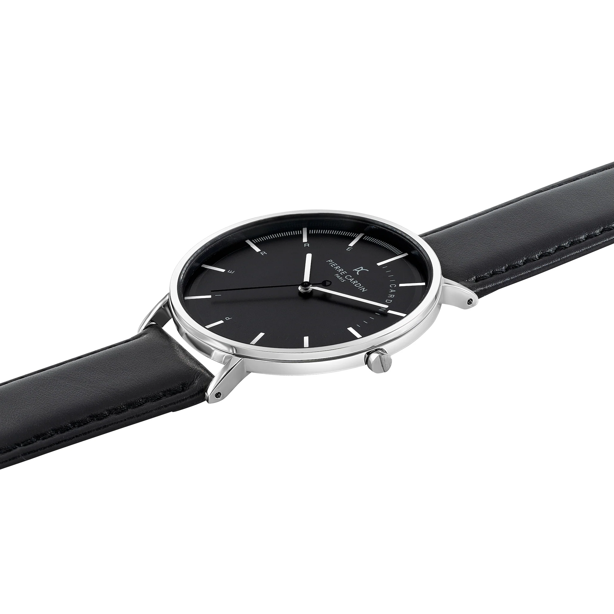 The Bonne Nouvelle leather watch for men is a statement piece that stays close to Pierre Cardin’s iconic design inspired by the cosmopolitan style of the Bonne Nouvelle district. The dial features minimal silver hands, The polished silver stainless steel watch case offers a touch of contrast to complement a classic black leather strap, a fine addition to all your outfits night or day.