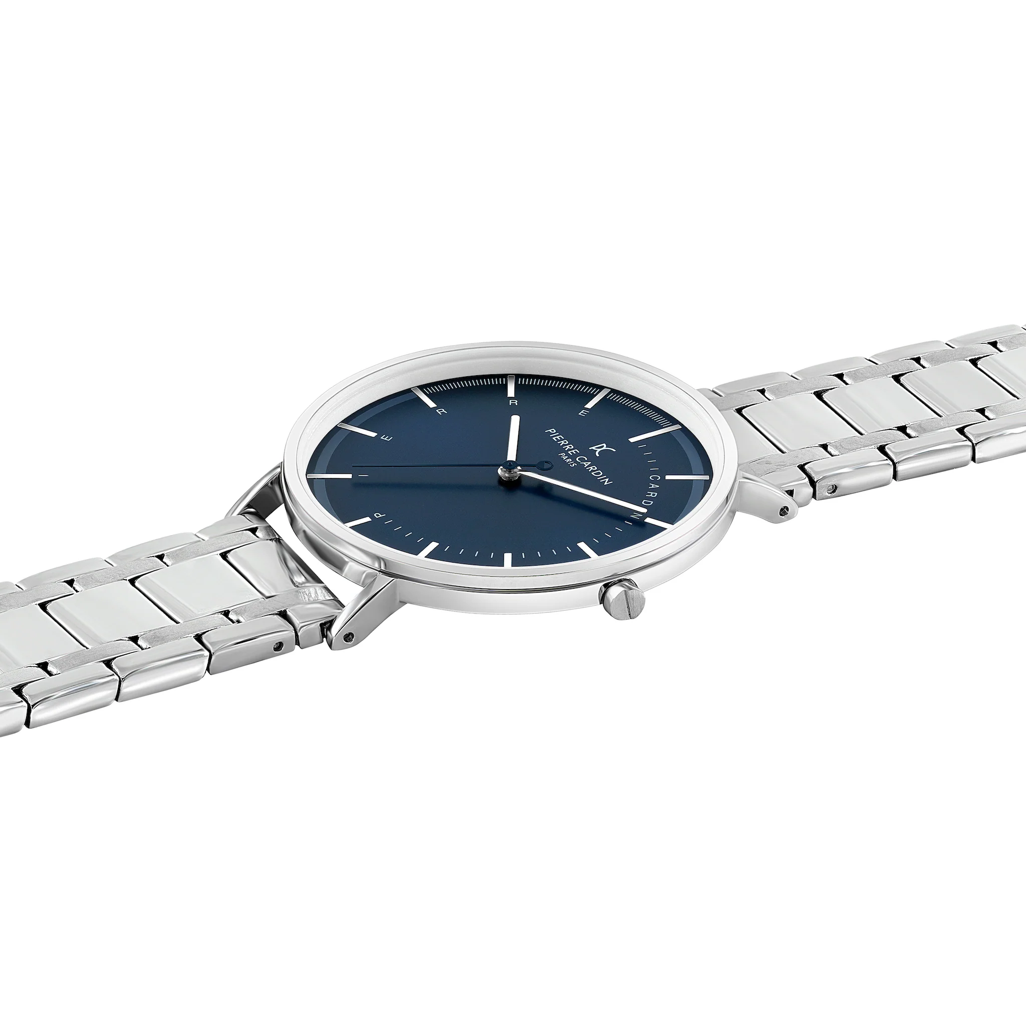 The Bonne Nouvelle metal link watch for men is a statement piece that stays close to Pierre Cardin’s iconic design inspired by the cosmopolitan style of the Bonne Nouvelle district. The dial features minimal silver hands, The polished Silver Stainless steel watch case offers to complement a metal links strap, a fine addition to all your outfits night or day.