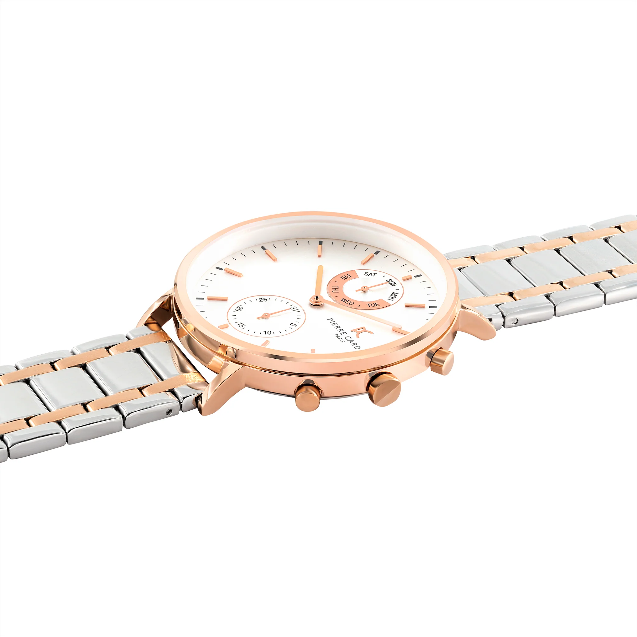 Bonne Nouvelle Rose Gold and Stainless Steel Multifunction Watch with White Dial and Metal Links Strap