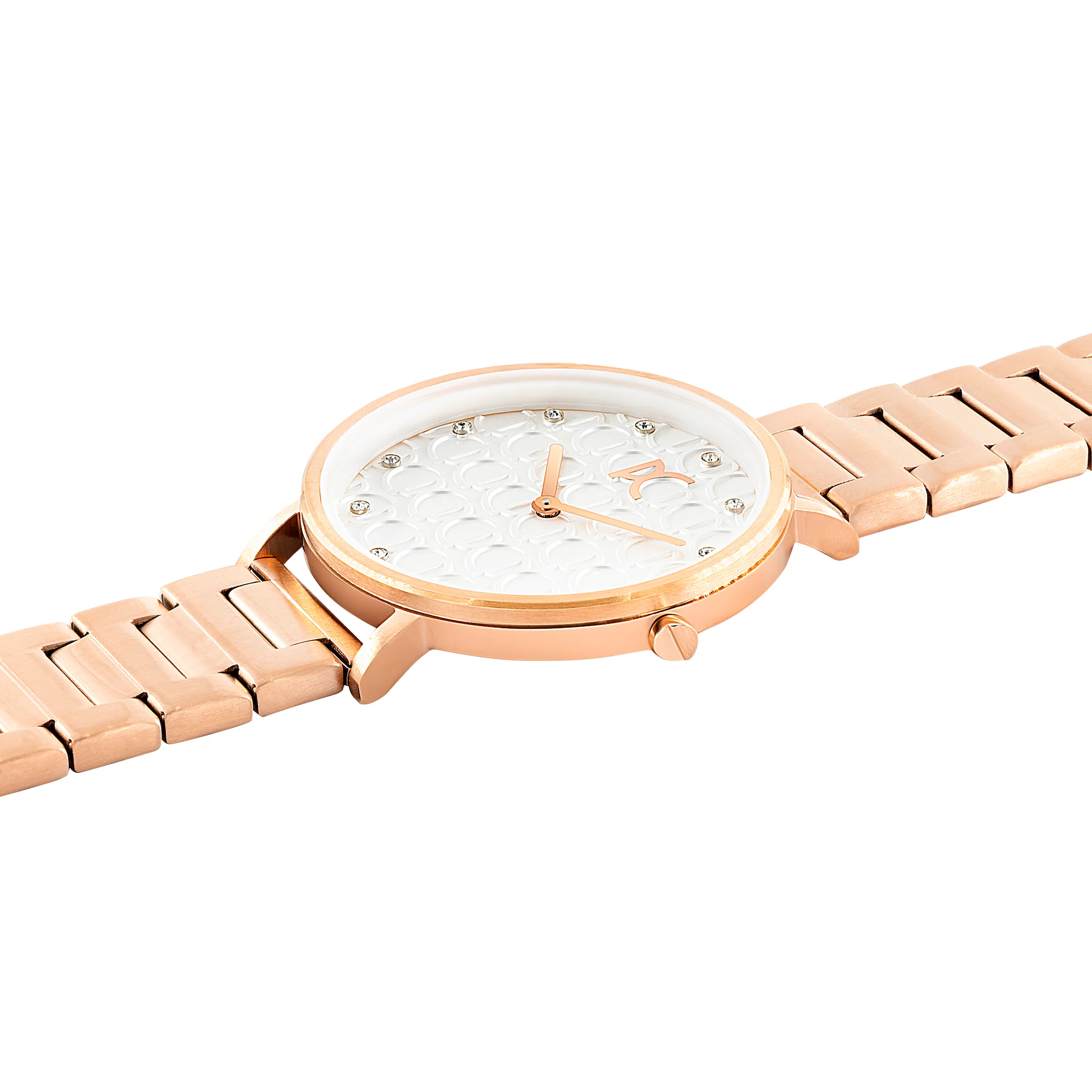 The Bonne Nouvelle metal link watch for women's is a statement piece that stays close to Pierre Cardin’s iconic design inspired by the cosmopolitan style of the Bonne Nouvelle district. The dial features minimal rose gold hands, The polished rose gold steel watch case offers to complement a metal links strap, a fine addition to all your outfits night or day.