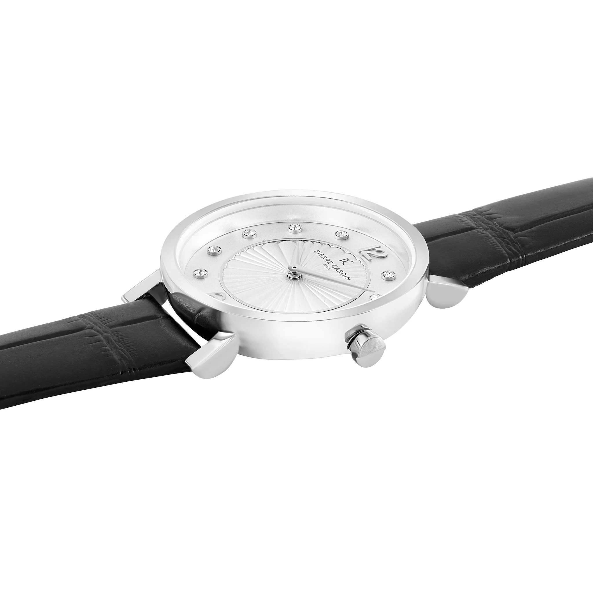 Wear a shimmering statement on your wrist with the Canal St. Martin sparkling black leather watch. Featuring an artistic play of textures with Pierre Cardin’s favourite shape, the sphere, this striking Stainless Steel watch gets an ultra-chic update with silver accents.